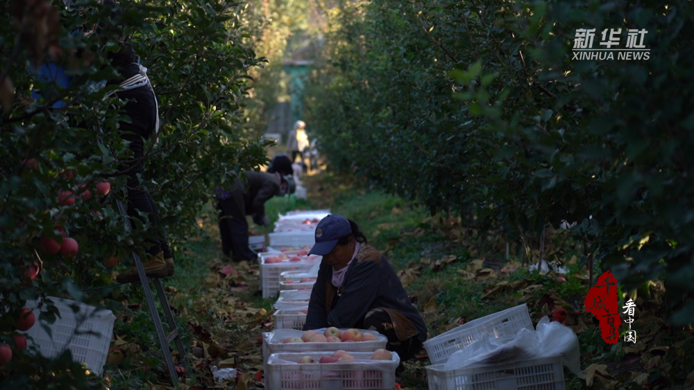 近日,河北省滦州市九百户镇鸡冠山生态农业产业园的苹果迎来丰收季,红艳硕大的苹果挂满枝头,处处弥漫着香甜气息,果农们忙着采摘、入库,现场一派丰收景象。