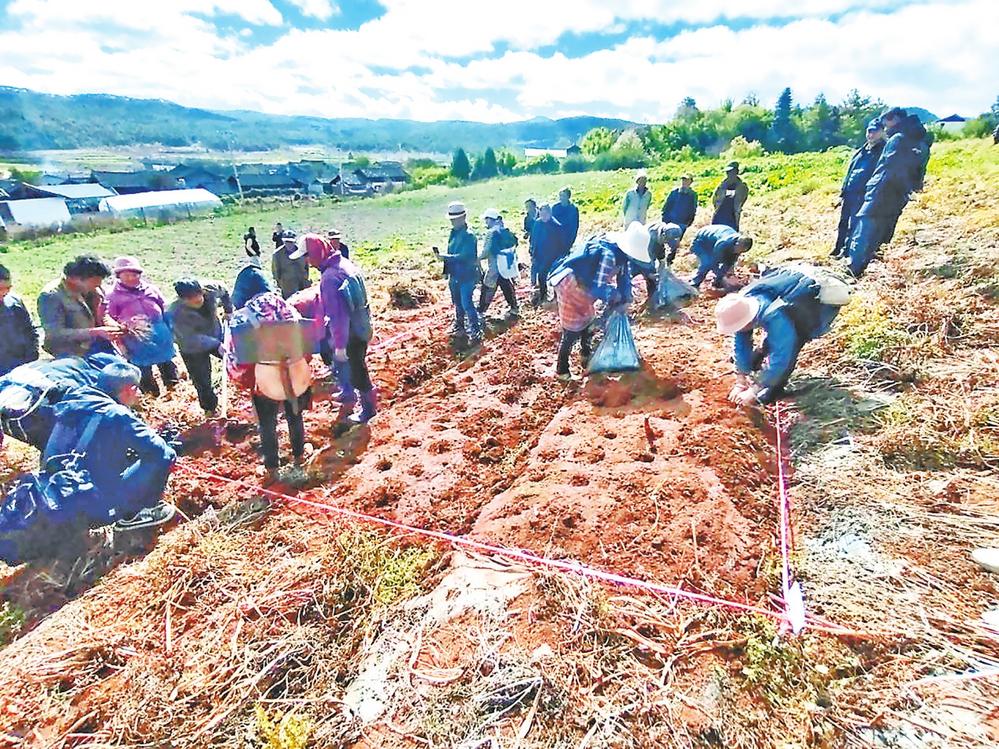 当天,丽江市科学技术局邀请相关专家组成专家组,对南溪社区云当归漂浮苗规范化种植地进行田间现场测产。经现场随机采样,3个调查点平均实收鲜云当归亩产量1764.28公斤,扣除杂质27.10%,折合亩产鲜云当归1286.16公斤,达到了良好的示范效果。