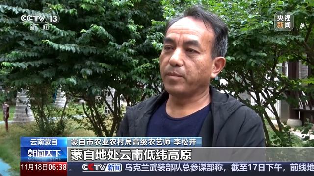 蒙自市农业农村局高级农艺师 李松开:蒙自地处云南低纬高原,北回归线从境内穿过,属于亚热带季风气候。冬无严寒夏无酷暑,年平均气温是18.6℃,日照时间长。蒙自蓝莓的特点是产量高、早熟、个头大、口感脆爽。