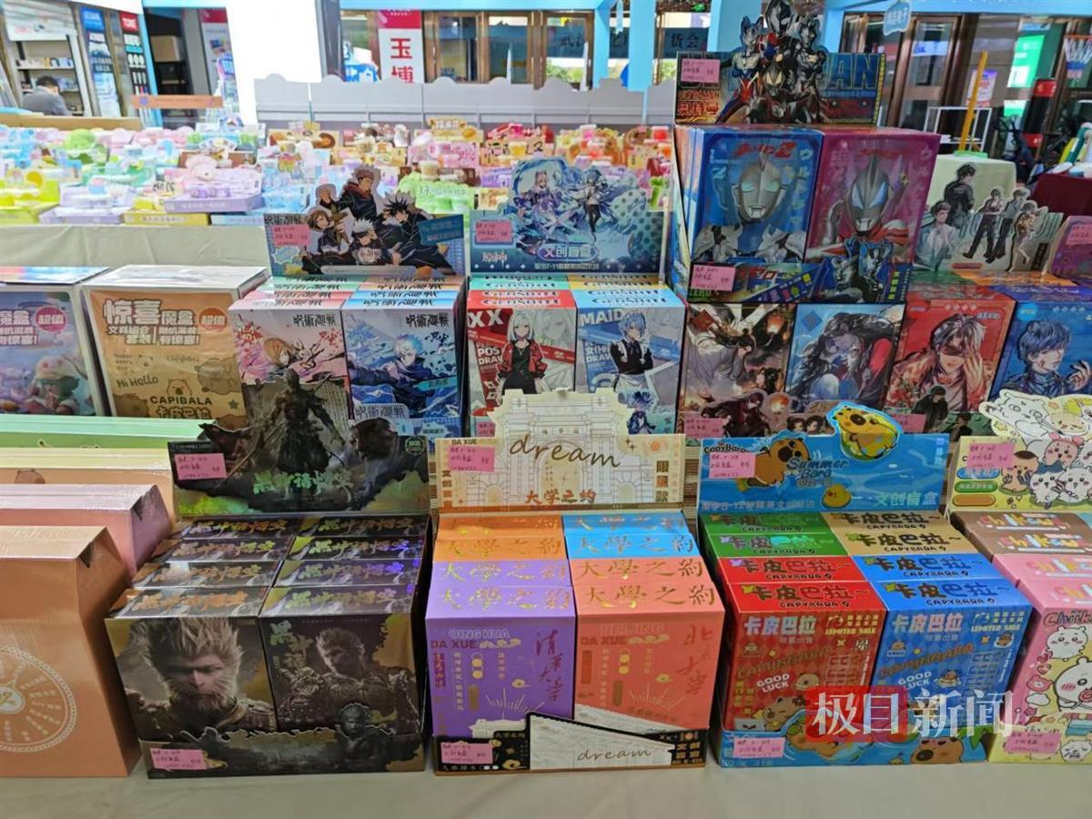此外,还有一些新奇潮玩成为年轻一代的打货热门。黑神话悟空、原神、咒术回战、蓝色监狱、卡皮巴拉、chiikawa等知名IP都出现在本次展会的各个角落,吸引了很多大学生前来购买“谷子”。在二次元文化中,“谷子”是指由“Goods”(商品)音译而来的词汇,主要指代由漫画、动画、游戏、偶像、特摄等作品衍生出的周边产品,包括但不限于海报、徽章、卡片、挂件、立牌、手办、娃娃等。