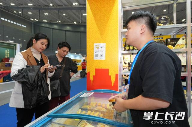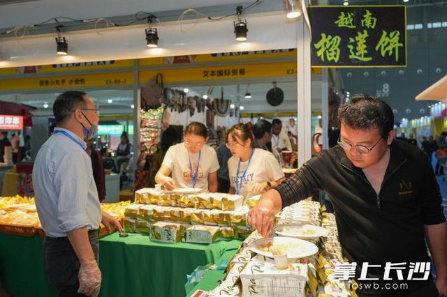 “大通湖大闸蟹是我们的地理标志产品,整个大通湖区域里面没有一家工业企业,水环境特别好,所以大闸蟹体大、肥美、营养丰富。”湖南省食安天下农业开发有限公司负责人冷国亮说,他们此次参展还带来了蒸锅和煮锅,锅里提前放置了特色调味料,有需要的游客可以直接购买后现煮现吃。展区里除了大闸蟹,还有小龙虾、益阳黑茶等各类本土农副产品。