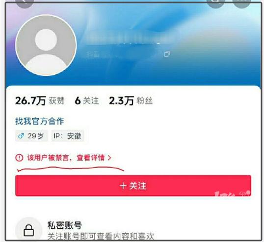11月18日,北青报查询发现,该博主的账号已被平台禁言。账号显示,他有2.3万粉丝,获赞26.7万。