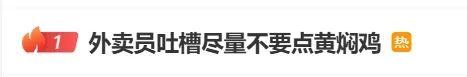 11月15日晚,一条“外卖员吐槽尽量不要点黄焖鸡”的词条同时登上微博和百度热搜首位。