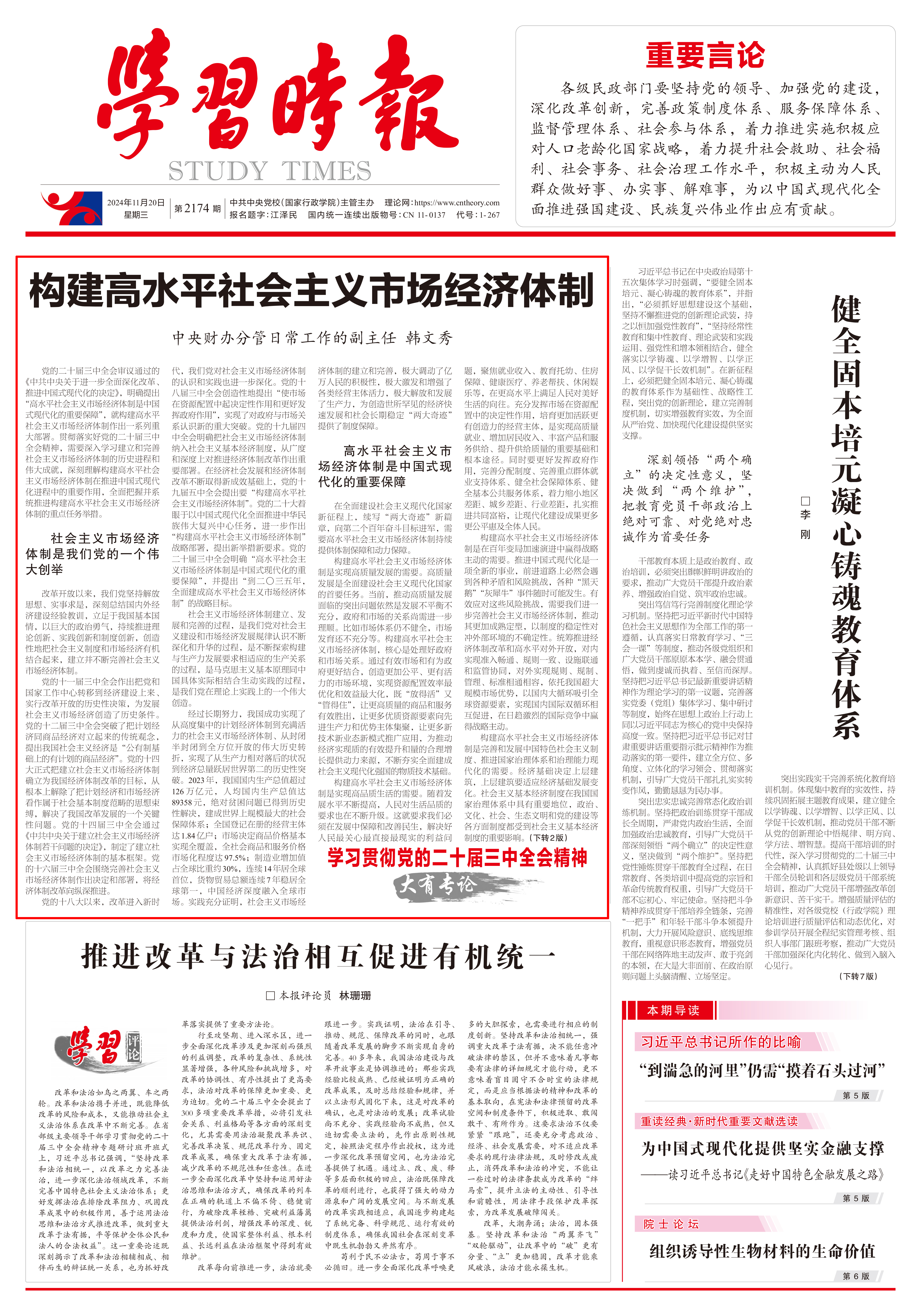 构建高水平社会主义市场经济体制改革任务艰巨繁重,必须准确把握各项改革任务的核心要义,科学制定改革任务实施方案,明确时间表、优先序,压实主体责任,以钉钉子精神抓好落实,加快推进各项改革任务落实落地,为中国式现代化行稳致远提供强大动力和制度保障。