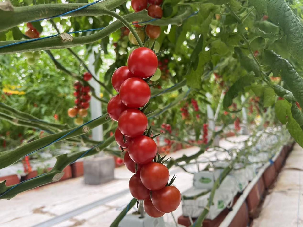 尔林兔农业示范园区种植园区内,一串串鲜红透亮的小番茄缀满枝头(神木市委宣传部供图)