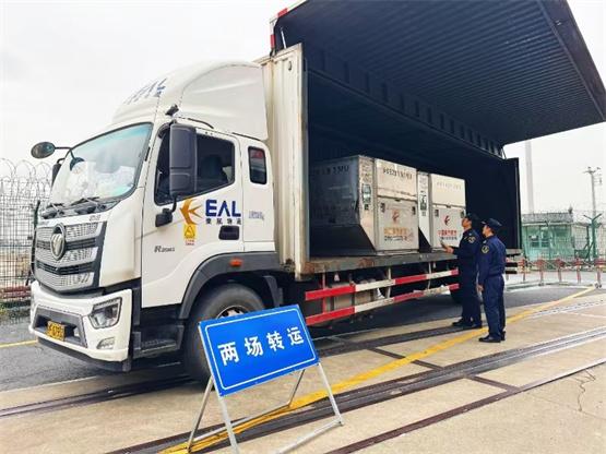 东方航空物流股份有限公司虹桥货站经理郭申霖说:“在海关监管下,从上海空港进出口的转关货物可以在虹桥机场和浦东机场间互转,后续再搭乘国际、国内航班运往目的地。这样可以充分依托浦东和虹桥两大机场航空运输资源布局,为运输企业提供多样化选择,节省运营成本。”