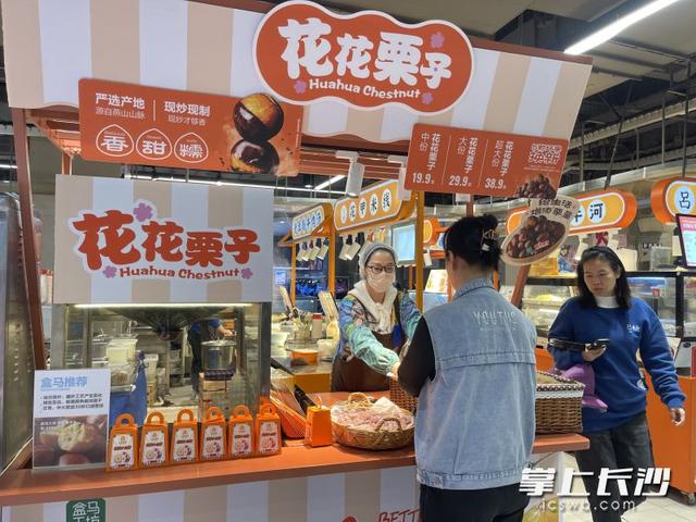 而在盒马长沙河西王府井店,香喷喷、油汪汪的“花花栗子”是每年冬季不少市民必须反复打卡的好味道。“板栗都是现炒现装的,热的时候很好吃,而且盒马还送了一个剥皮神器,在板栗上轻轻一按一捏壳就开了,非常方便。”