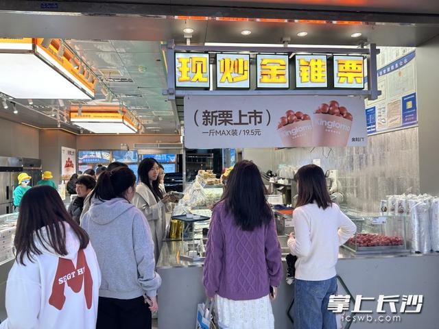 “刚出炉的糖炒栗子,可以试试味。”21日上午11时许,记者来到位于长沙万家丽国际广场的“金粒门”,热气腾腾的糖炒板栗散发出阵阵诱人的香气,吸引了不少消费者排队购买。作为长沙栗子界的“网红”店,这家店主打的招牌产品“东方珍栗”主要来自河北迁西,个头均匀、皮薄肉厚。另一款“白露金锥”则主要产自南方特定产区,相比其他品种的板栗更香,口感也更粉糯。