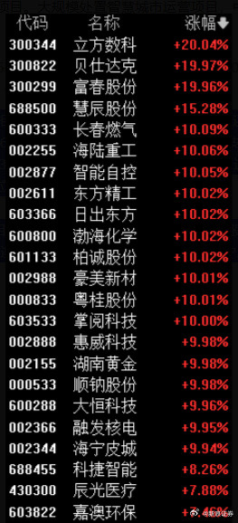 今天上午,A股出现罕见一幕,股票代码后两位数字相同的个股掀起了涨停潮。上述几只个股,除了大千生态均涨停,粤桂股份迎来12天11板,日出东方迎来15天13板,东方精工7连板,海宁皮城、渤海化学6连板。