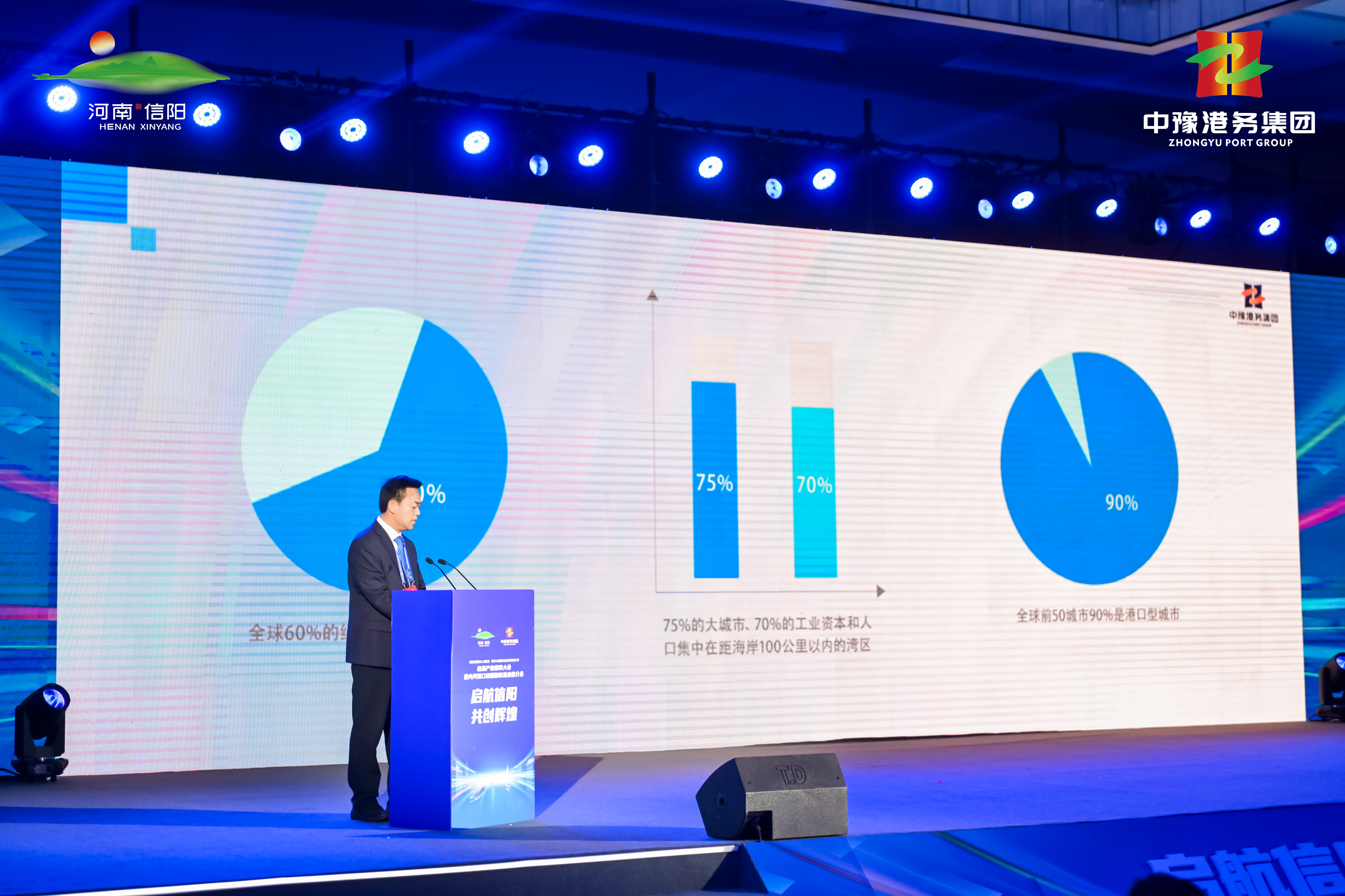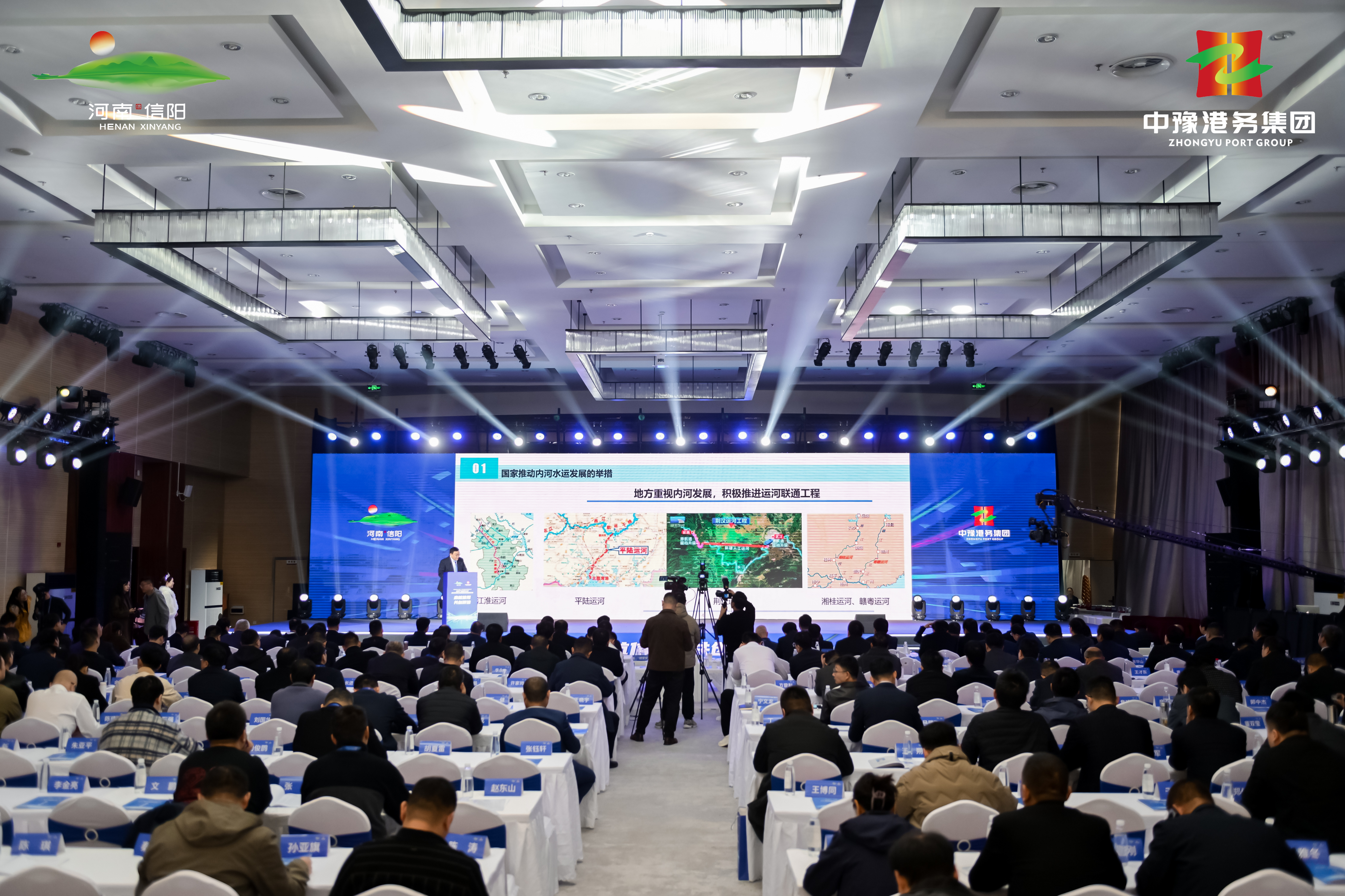 大河网讯(记者何山)11月21日,由信阳市人民政府与河南中豫国际港务集团有限公司联合主办的临港产业招商大会暨内河港口和船舶制造业推介会在信阳召开。省内相关政府部门、专家学者和行业企业代表齐聚信阳,共同探讨内河航运发展新模式,搭建交流合作平台。