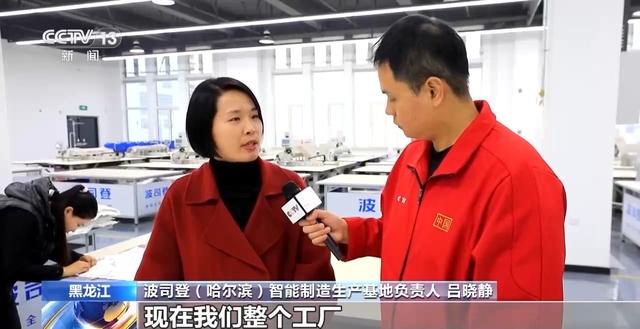 波司登(哈尔滨)智能制造生产基地负责人 吕晓静:现在整个工厂自动化设备占比是40%至50%。由之前的5分钟生产一件羽绒服,现在提升到了2分多钟到3分钟一件。