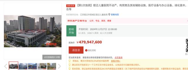 拍卖与医院破产清算有关。11月24日,清算组相关律师向红星资本局表示,宿迁儿童医院资不抵债,股东申请了强制清算。