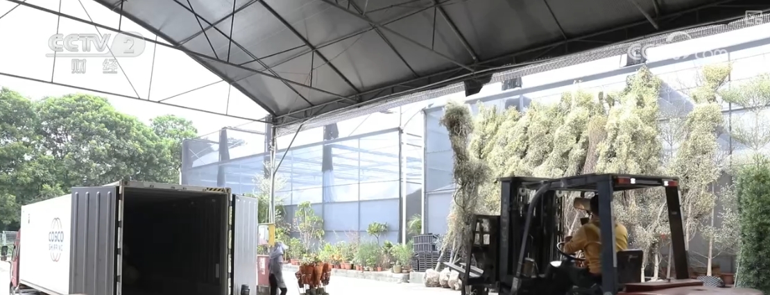 在广东佛山的一家苗木种植场,两万多株肖竹芋、橡皮榕、蔓绿绒等花卉苗木经海关检疫合格后,被工人们打包装车,将通过海运的方式出口到新加坡,用于当地城市景观建设。