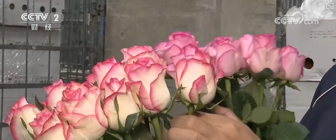 不仅是盆栽,鲜切花同样出口火爆。在甘肃临夏的国际鲜花港,各个品种的玫瑰都已经进入采摘高峰期。这里的负责人介绍,他们主要的市场在欧洲和中亚地区,使用冷链车运输,全程温控保鲜。