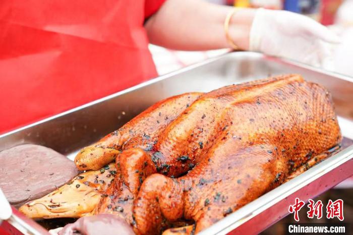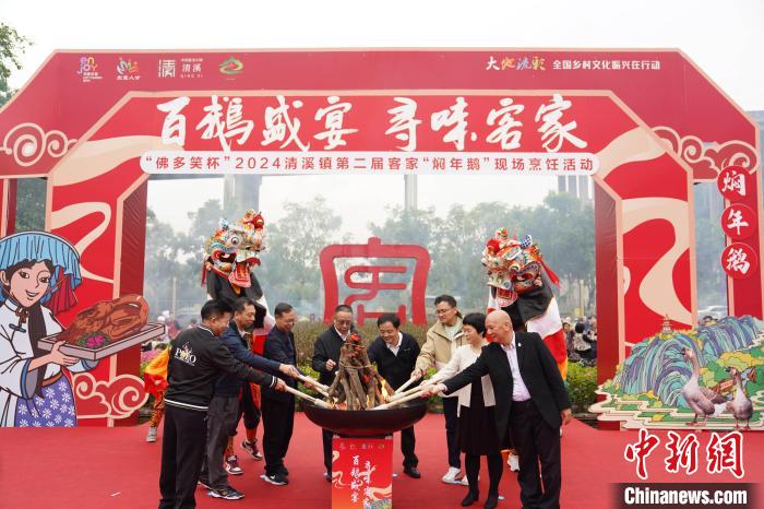 中新网东莞11月25日电(许青青李纯傅娴)东莞市清溪镇24日举行第二届客家“焖年鹅”现场烹饪活动,现场同时烹饪风格各异的100只焖鹅,并与其它地道客家菜共同组成“百鹅宴”,吸引众多市民游客前来品尝。