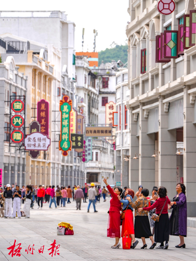 升级改造后的骑楼城以“岭南风情历史文化街区”为定位,内设不同街区,“烟火气”与“文艺范”更加突出,为市民游客带来不一样的文化体验——砖雕、牌坊、女儿墙等中国传统建筑元素充分展现;罗马柱、拱窗、雕梁洋溢着昔日的西洋风情;风格迥异的广告牌、栩栩如生的青铜雕塑、流光溢彩的龙形花灯、萌态可掬的迷你狮头等街头装饰充分激发岭南文化的时代活力,吸引了无数市民游客争相“打卡”、拍照。