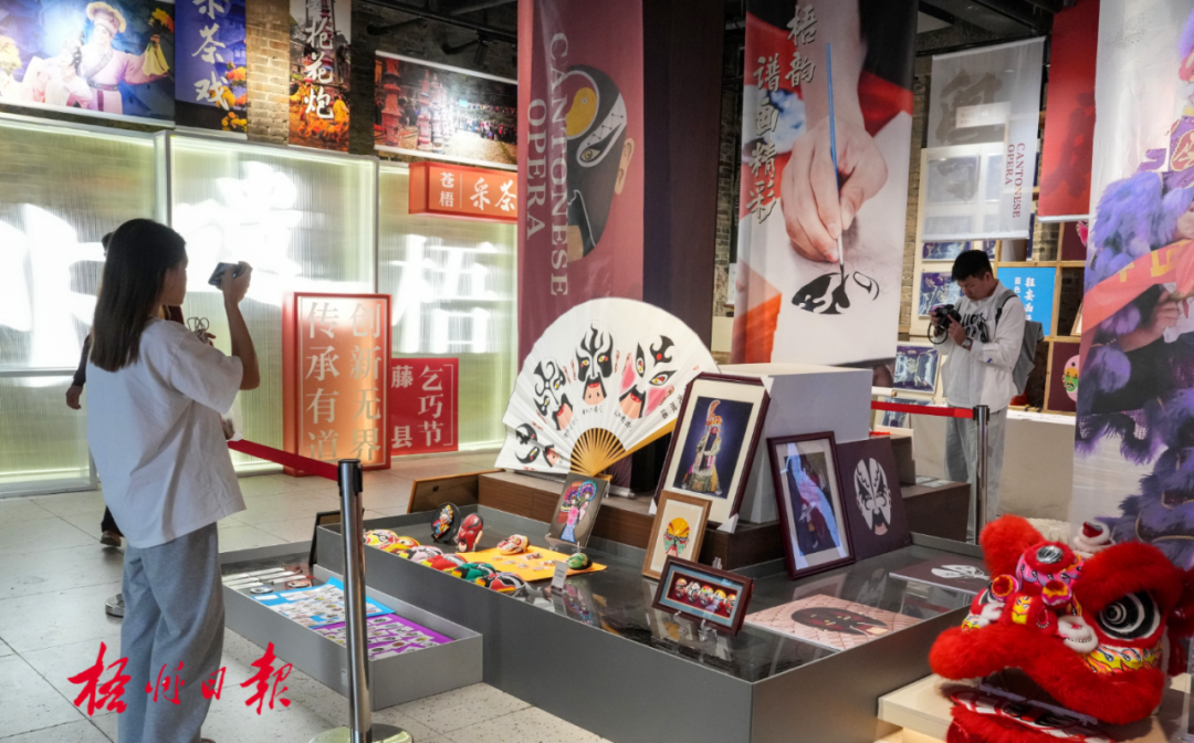 十字街里面还隐藏着梧州非遗文化体验馆,该馆以图文、实物等展陈方式让市民游客感知梧州文化之美。走进馆内,浓郁的文化气息扑面而来,六堡茶制作技艺、藤县狮舞、龟苓膏配制技艺……琳琅满目的梧州非遗项目,让人目不暇接。