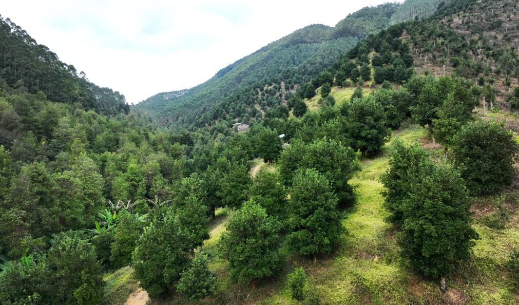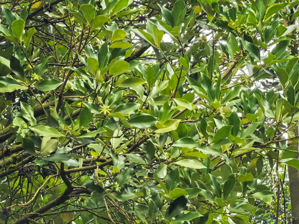 小雪节气过后,广西玉林福绵区的六万林场内,八角秋果的采摘已渐入尾声。山坡上,苍翠的八角树枝头点缀着小巧淡红的花朵,其中一些已经孕育出了嫩绿的幼果,静待明年春天的成熟与收获。