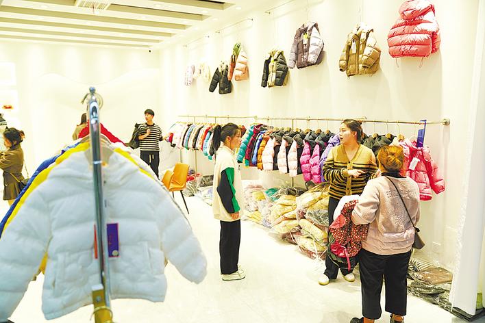 顾客选购羽绒童装(资料图片)。(新华社发)