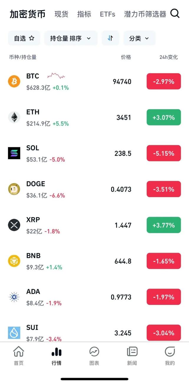 比特币最新报93343美元,下跌5.41%,其他加密货币也多数下跌,狗狗币下跌11.2%,SOL下跌8.8%。以太坊下跌了3.68%。
