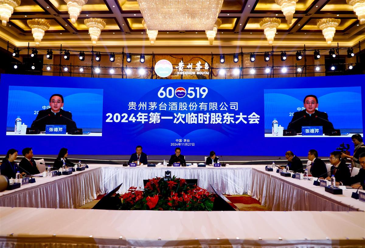 11月27日,贵州茅台2024年第一次临时股东大会在茅台镇茅台国际大酒店召开,吸引了数百人从天南地北赶到了茅台镇。由于参会嘉宾较多,大会前一天茅台国际大酒店就出现普通客房满房的情况。