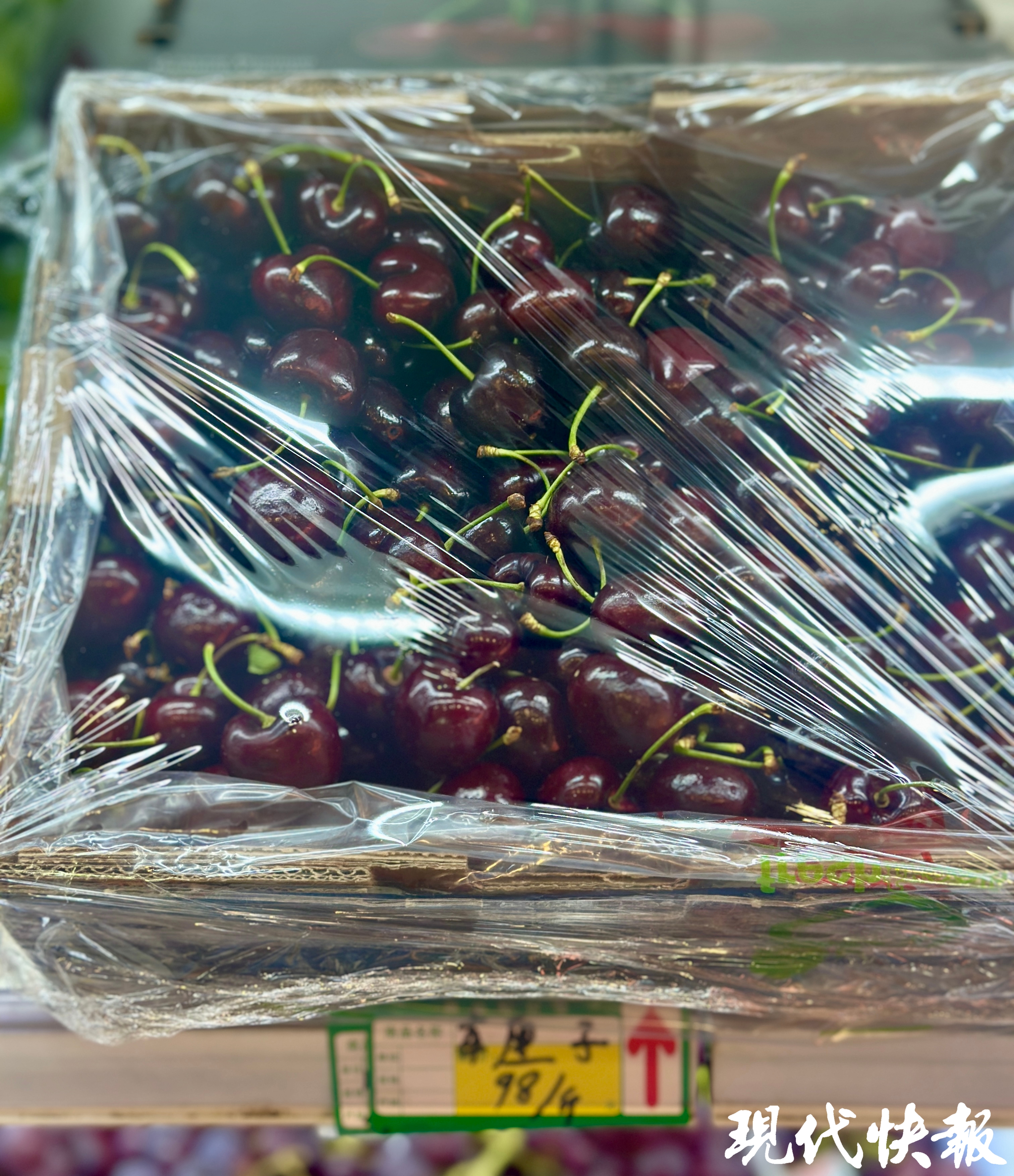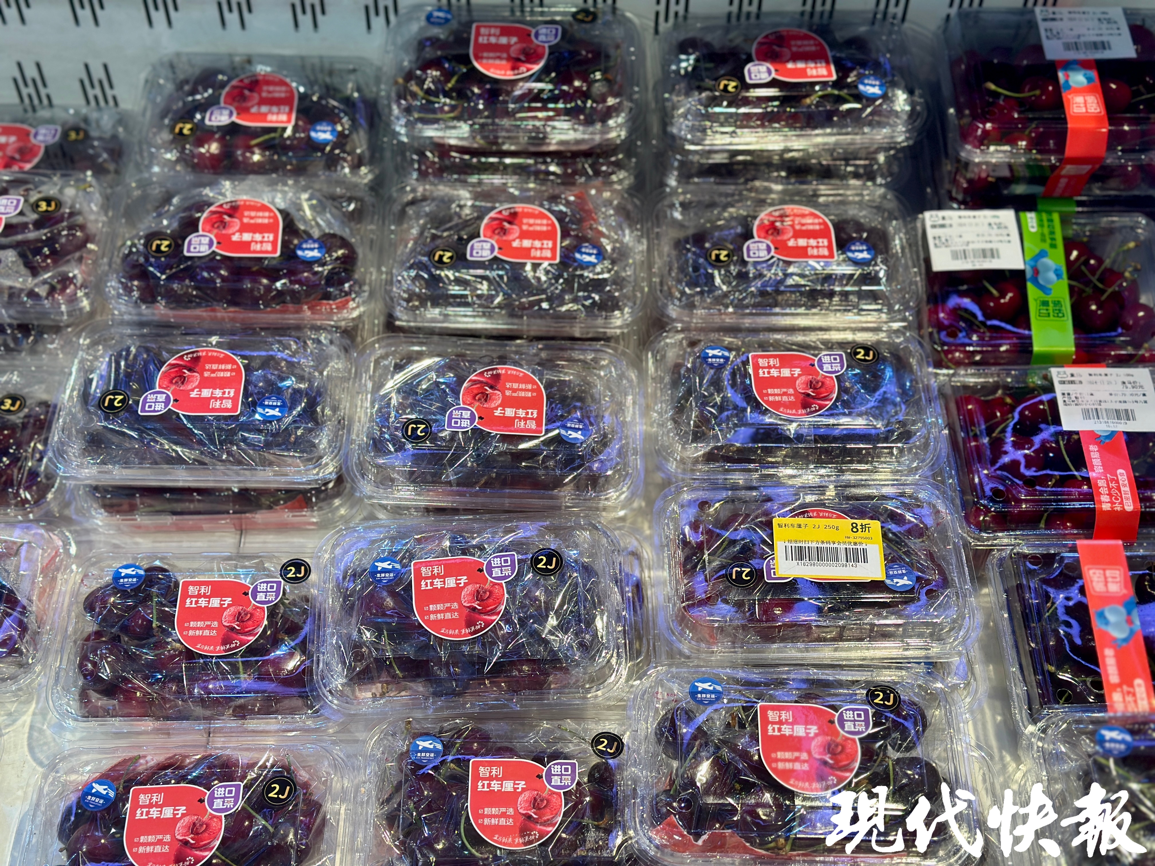 “品质进口车厘子,当红出道。”在南京秦淮区一家连锁商超内,一进门便能看到这句醒目的标语。2J售价49.9元/250g、3J售价59.9元/250g、4J售价99元/250g……“J”(Jumbo)是南半球车厘子分级常用单位,1J的小果车厘子直径约26毫米,和一枚硬币差不多大。2J的中果车厘子直径约28毫米,3J的大果车厘子直径约30毫米,4J的超大果车厘子直径超过32毫米。“2J的车厘子卖得比较好,一斤装的88元一盒,已经售罄了,还在等着补货。”店员说道。