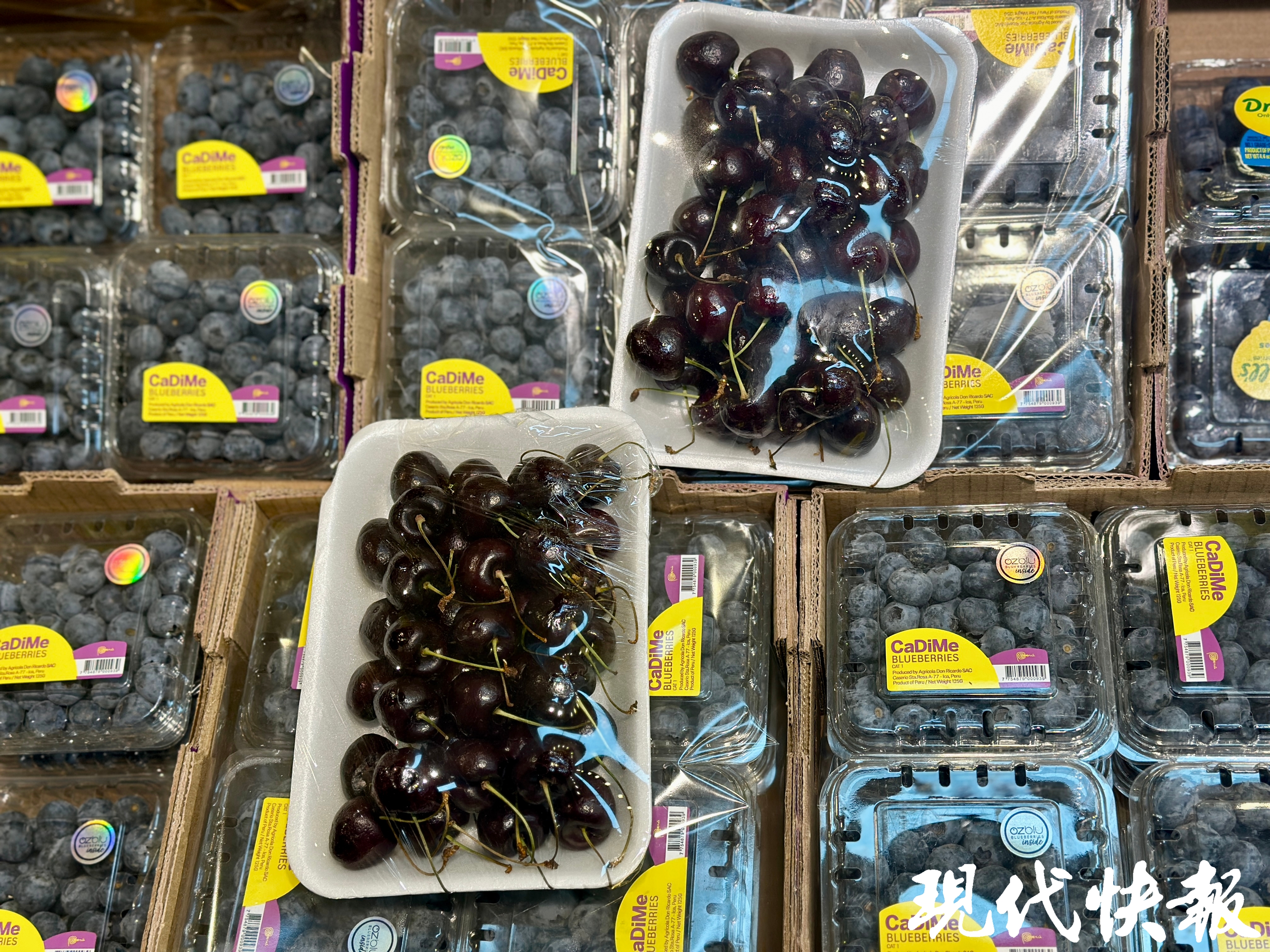 现代快报讯(记者史童歌文/摄)要说冬季水果的“顶流”,非草莓和车厘子莫属。近日,红彤彤的草莓被摆放在各个水果摊的显眼位置,给冬季的水果市场增添了一抹亮丽的色彩。11月28日,现代快报记者走访发现,脆甜多汁的车厘子也已经在部分水果店和商超“抢鲜”上市,不过货少且价格不菲,要想实现“车厘子自由”,还得再过一段时间。