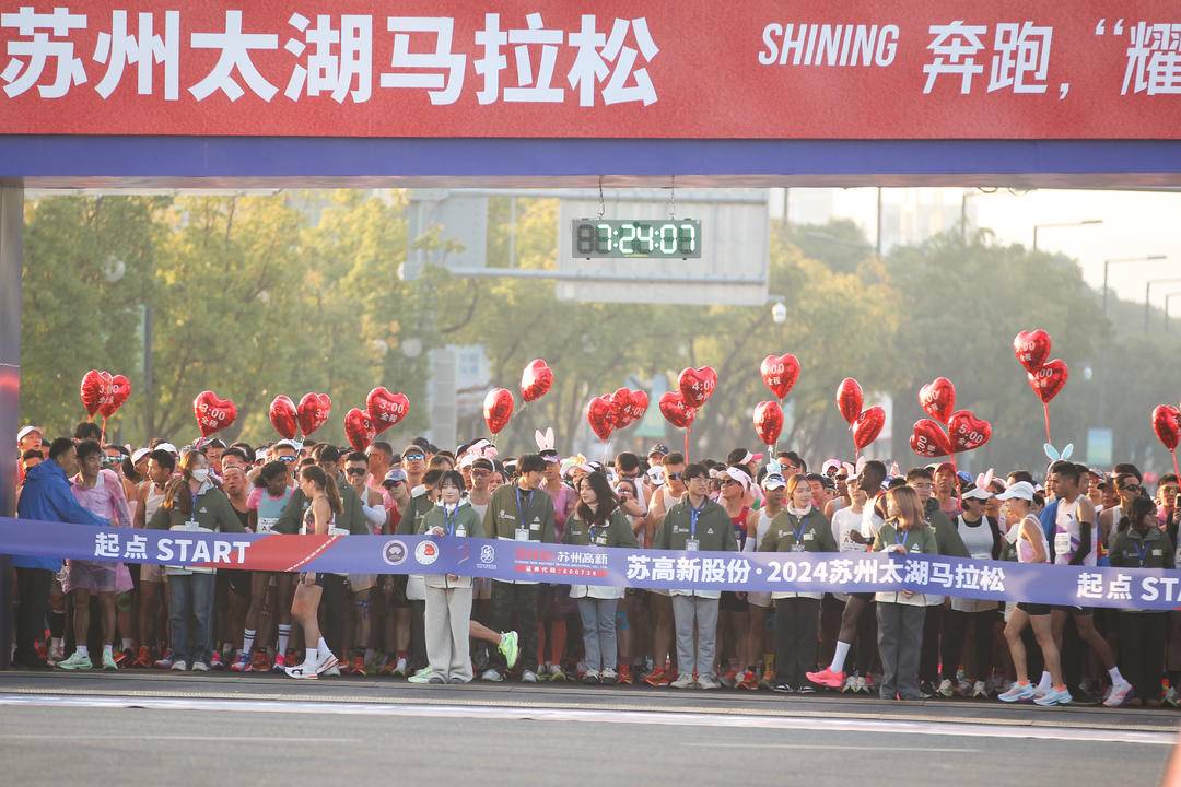 12月1日上午7点30分,苏高新股份·2024苏州太湖马拉松在苏州高新区狮山文化广场隆重鸣枪起跑。本届赛事以“奔跑,‘耀’有态度”为主题,共设马拉松、半程马拉松、欢乐跑三个竞赛项目,吸引了来自全国各地乃至18个国家的近25000名选手同场竞技。选手们齐聚这科技与人文双面“绣”就的赛道,共同领略秀美高新,感受如在画卷中穿行的美好,以及“有朋自远方来,不亦乐乎”的苏州盛情。