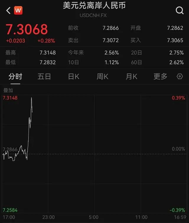 12月3日早间,离岸人民币对美元接连跌破7.30和7.31关口,日内跌近300点,创下去年11月初以来的新低。