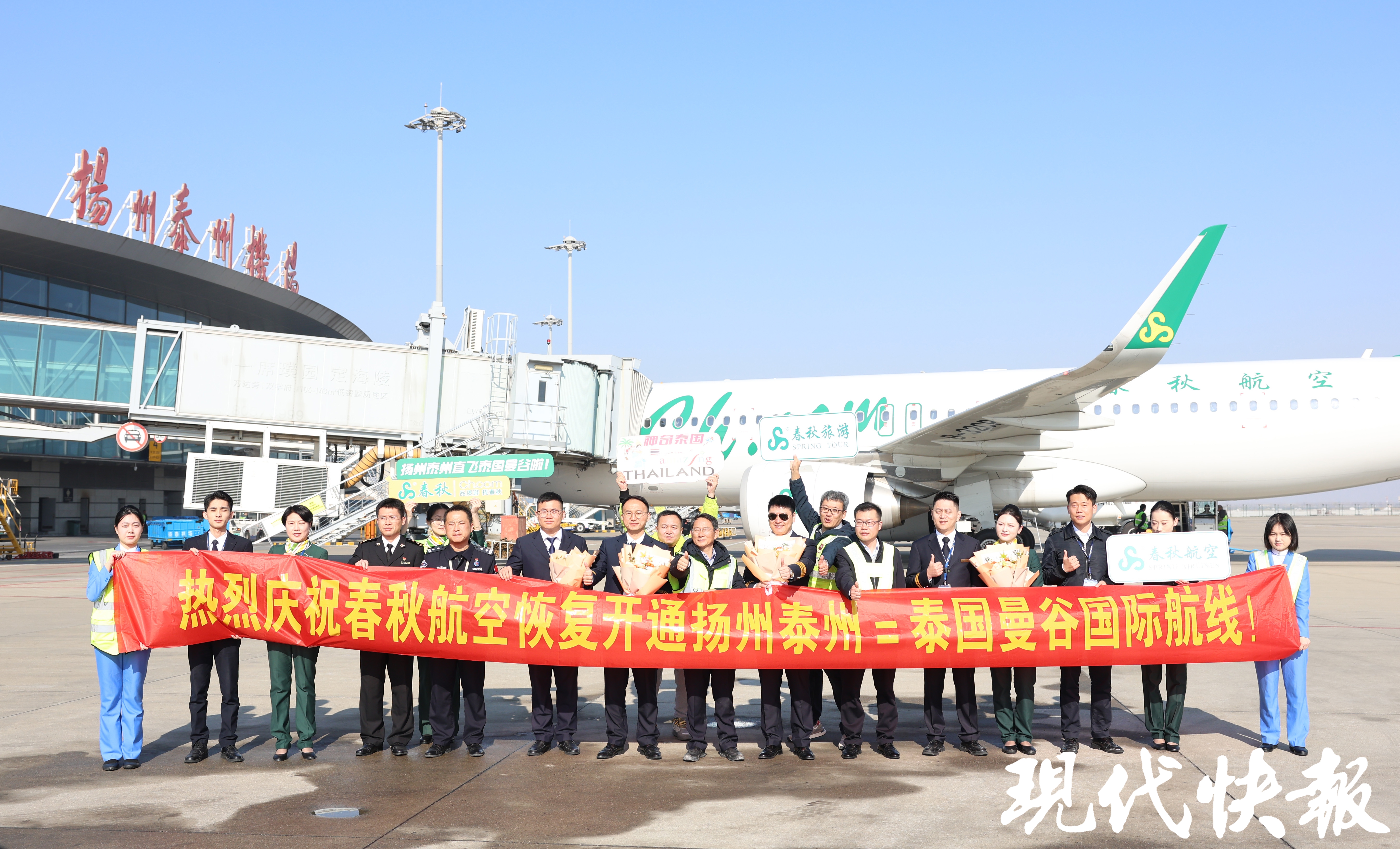 现代快报记者了解到,中泰两国从今年3月起永久互免对方公民签证,不仅方便了泰国人赴华,也让中国民众前往泰国更加便利,促进了两国之间的交往。本次航班的开通,拉近了扬州泰州和曼谷的直线距离,从扬州泰州国际机场出发,直线飞行时间4小时50分钟就能到达泰国首都曼谷,体验东南亚国家的历史文化和人文热情。值得一提的是,数据显示恢复当天及12月4日的曼谷航线,客座率均达到100%。