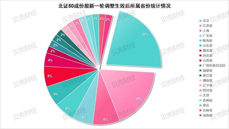 但本轮调仓后,北京成为拥有北证50成份股最多的地区。23家京籍北交所上市公司中有11家进入北证50成份股大名单,其中国家级专精特新“小巨人”数量为5家。