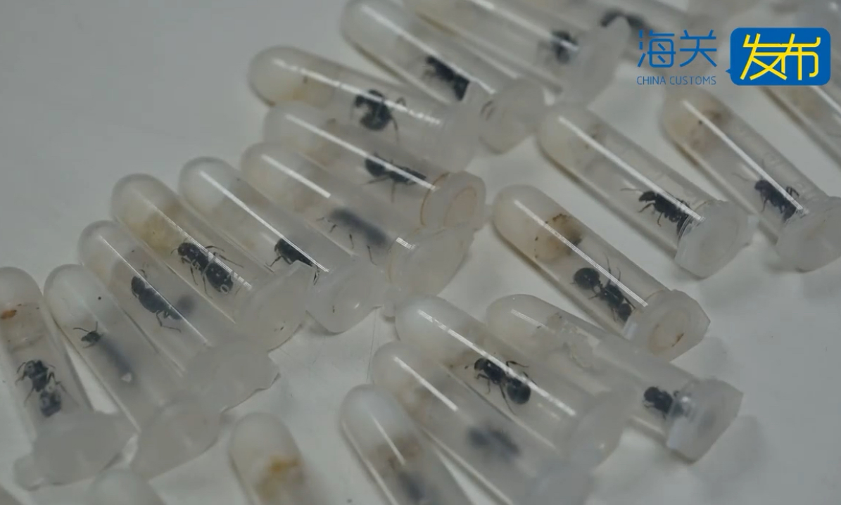 近日,上海浦东国际机场海关在对进境快件开展监管时,一票进口申报为“电水壶”的快件引起了现场关员的注意。该票货物为纸箱包装,开拆发现内部除一个盒装电水壶外,四周还充填了大量白色泡沫、透明塑料管,每只塑料管内均有1只活体蚂蚁和浸渍液体的棉花,经核数共计979只蚂蚁。