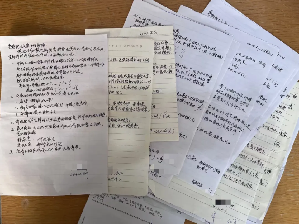 “以前太太每两天测一次血糖,这两年病情相对比较稳定,所以每周测一次。”说起这一封封手写信的来由,梁先生告诉记者说,因为自己退休前是厂长,要处理的事务很多,所以养成了事事记录的习惯。因此也习惯把妻子的作息汇报、吃药后的反应以及开药诉求等信息写在一张信纸上,一写就是满满一页,落款署上太太的名字,希望她能够恢复健康。