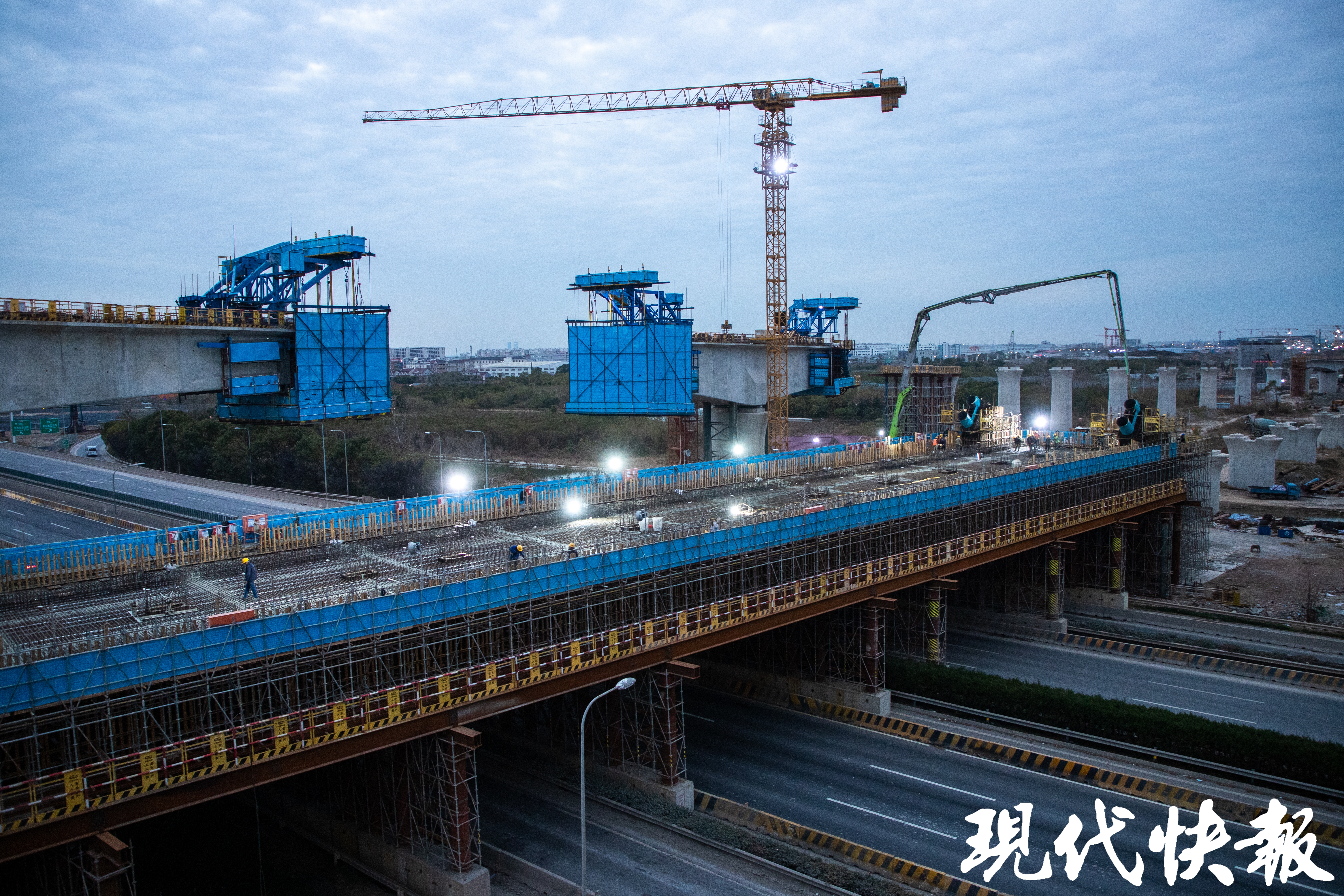 现代快报讯(通讯员许文峰记者刘伟娟)现代快报记者从中国铁路上海局集团有限公司获悉,12月10日,沪苏通铁路二期(即沪苏通铁路太仓至四团段)控制性工程——惠南特大桥跨S32申嘉湖高速96米系杆拱梁体系梁顺利浇筑完成,为后续架梁铺轨奠定了坚实的基础。