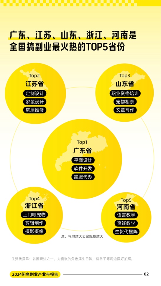 12月10日,闲鱼发布《2024闲鱼副业产业带报告》(以下简称《报告》),根据闲鱼平台上的技能服务类副业卖家规模、副业交易规模等数据,整理了全国各地年轻人开展副业的新动向。