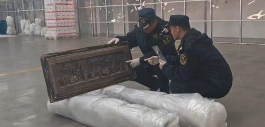 近日,天津东疆海关关员在对一票出境货物进行查验时,发现实货雕刻精美,人物造型细腻逼真,疑似文物。后经天津市文化遗产保护中心鉴定,该木制品为清代文物浮雕人物故事花板。