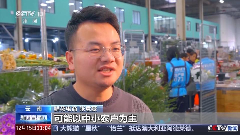 在昆明市某电商直播园区,张意豪正和他的团队研究晚上直播的选品。这段时间以来,鲜花订单量迎来了井喷式增长。