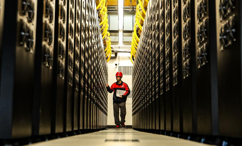 工作人员在贵安超算中心数据机房内工作。 新华社记者 刘续 摄