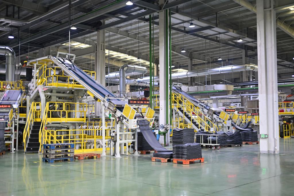 这是杭州中策钱塘实业有限公司轮胎数字工厂车间。新华社记者 江汉 摄