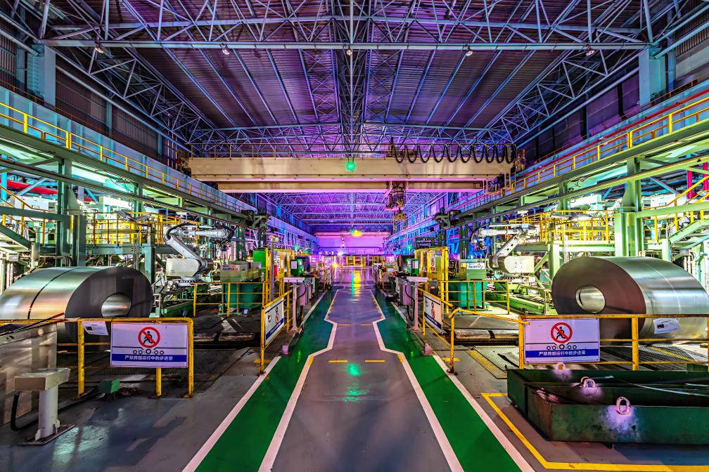 这是中国宝武宝钢股份宝山基地冷轧厂C008智能车间(“黑灯工厂”)内景。新华社记者 方喆 摄