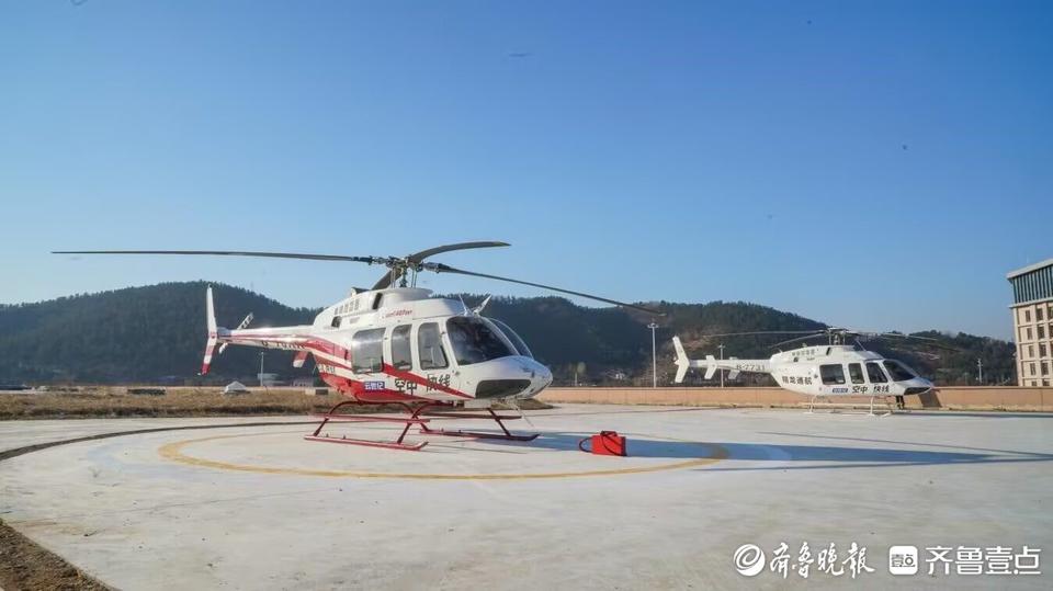 此次首航选用的机型是贝尔407。青岛翔龙通用航空有限公司飞行副总兼机长张连敏介绍,该机型性能比较优越,采用罗罗发动机以及发动机全权数字控制系统,包括garmin航电系统,还有地形回避警告系统,及尾桨摄像头和直升机garmin合成视觉技术。巡航速度240公里/h,加满一次油,可以实现机场到市区五次往返。能够实现垂直起降及各种复杂环境的起降。另外该机型采用七座商务布局,配备boss耳机,全程低噪音巡航,使乘客全程比较舒适惬意。