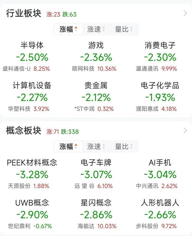 半导体板块表现低迷,纳芯微、乐鑫科技、中科飞测、慧智微、矩芯科技、晶合集成、艾为电子、新相微、龙芯中科等多股跌超5%。机器人板块人气股建设工业午后触及跌停,盘中上演“天地板”,成交额近34亿元。
