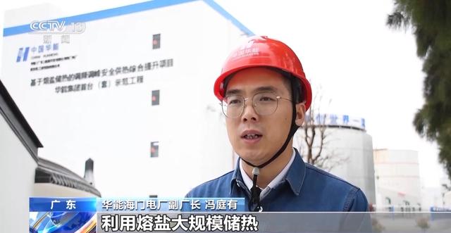 华能海门电厂副厂长 冯庭有:利用熔盐大规模储热可实现机组安全灵活运行,每年可增加新能源消纳电量3亿千瓦时,减排二氧化碳24万吨。