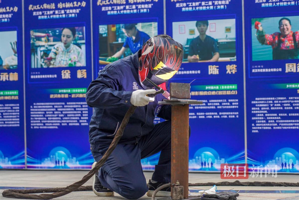 蒙着眼罩,一手握着焊枪,一手则熟练地送着焊丝。只用3分钟,他成功地焊接出一条鱼鳞焊纹。日前,在武汉市总工会举办的第二届“武有绝活”高技能人才技能大赛决赛中,来自中国长江动力集团有限公司的23岁小伙周诗阳的这一绝活,让人惊艳。