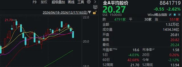 Wind数据显示,今天跌幅在9.95%及以上的个股多达173只,它们的平均市值仅为60亿元。受此影响,全A平均股价也跌了2.62%。