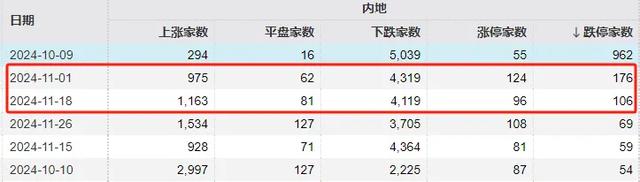 13:27,随着大盘拉升翻红,跌停家数短暂拐头,但20分钟后“重拾涨势”,收盘时录得162家,11月以来仅次于11月1日的176家。