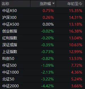 其他主要股指中,中证A50和沪深300逆势飘红,意味着只有少数“核心资产”即权重股在支撑指数。