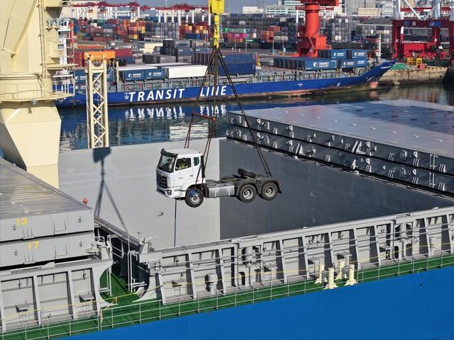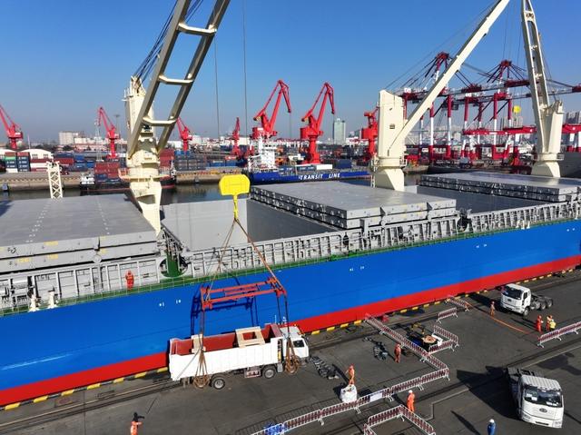12月16日,搭载车辆、设备、钢材等2万余方货物的“GREEN NAGOYA”轮正在山东港口青岛港大港公司紧张作业,该轮将在20天后抵达非洲坦桑尼亚达累斯萨拉姆港。这标志着山东港口青岛港首条东南非直达快航周班正式开通,青岛港成为中远海运特运在中国北方唯一的件杂货班轮“枢纽港”。