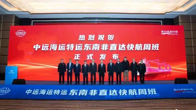 当天,由中远海运特运、山东港口青岛港联合主办的中远海运特运东南非直达快航周班服务发布会在青举行,全面介绍推介航线及港口相关服务。会上,中远海运特种运输股份有限公司董事、总经理黄南,山东港口青岛港党委副书记、董事、总经理李武成,徐工集团工程机械有限公司副总裁蒋明忠分别致辞。中远海运特运、山东港口青岛港、口岸单位及相关客户代表参加活动。