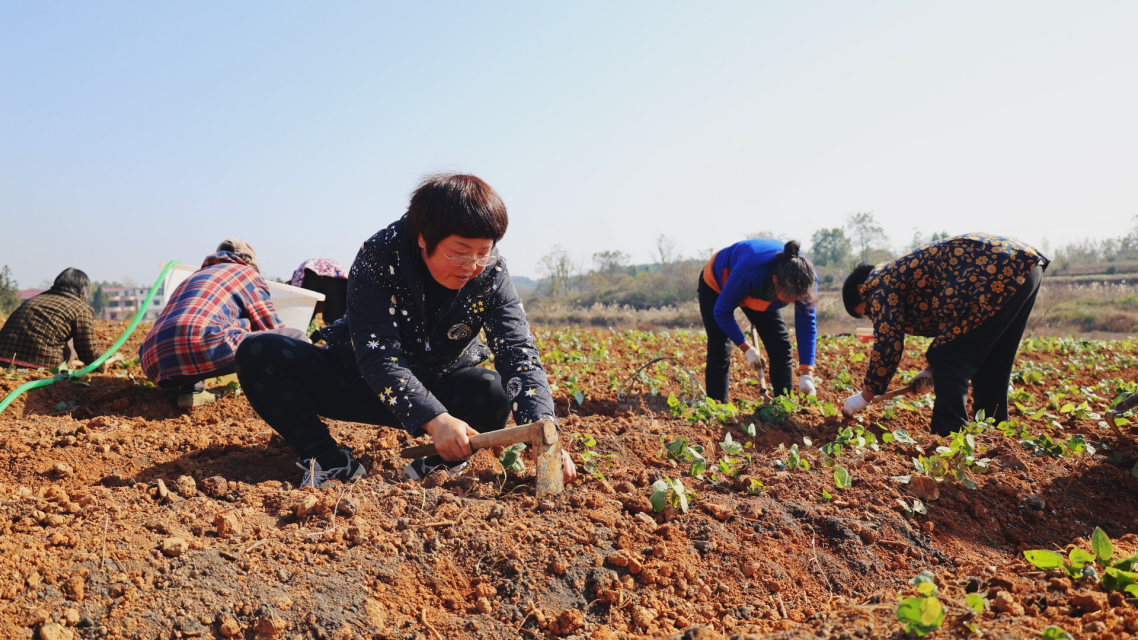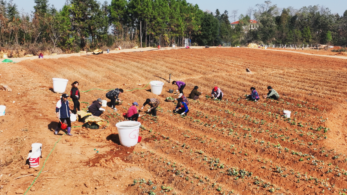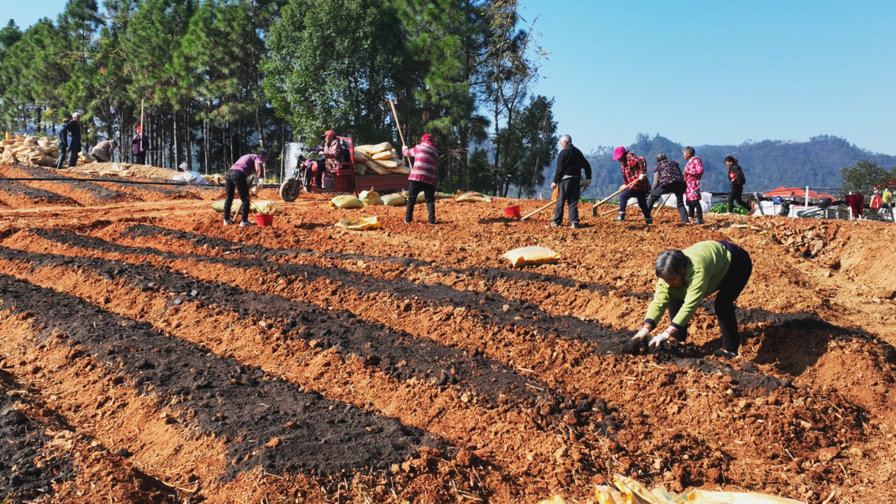 在衡阳县库宗桥镇虎形村的淫羊藿种植基地,百余名村民正手持农具翻耕山坡土块,并清理其中的草根和石块,翻耕三四次后,再加入有机肥和火灰,便可以种植淫羊藿的株苗。